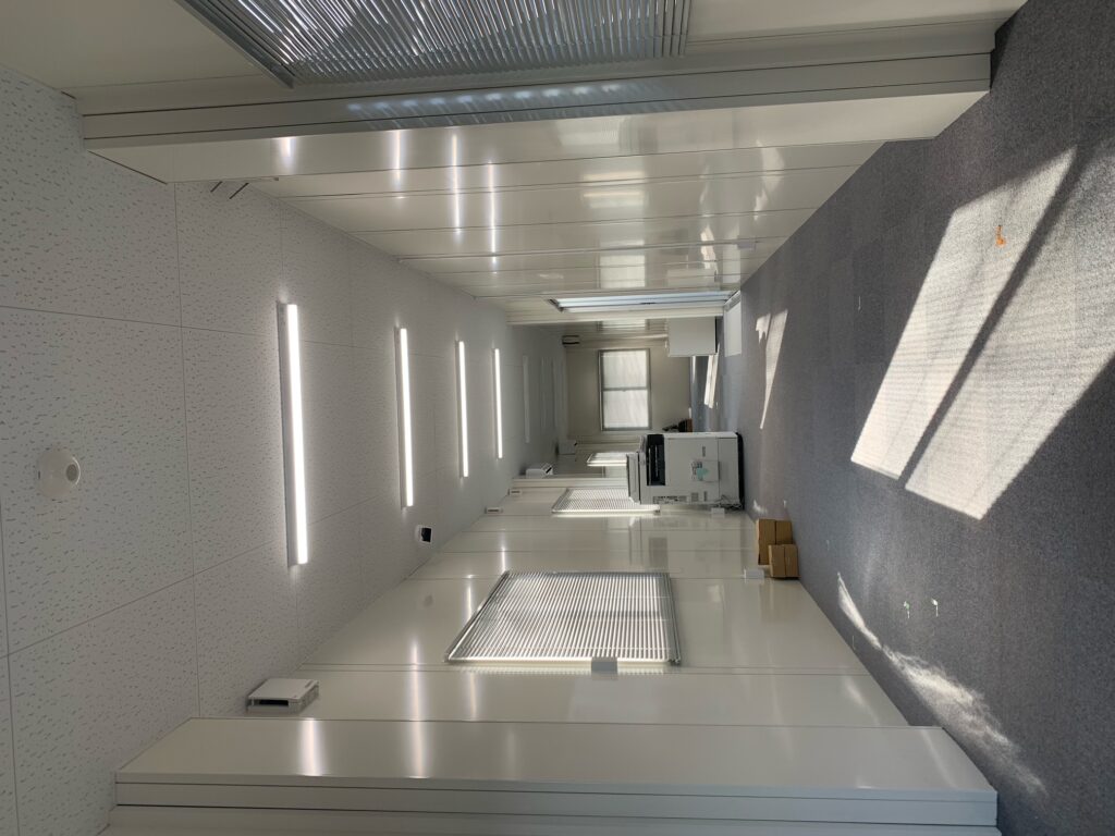 今日は、まだ未完成ですが新棟の室内の一部を写真に撮りました。